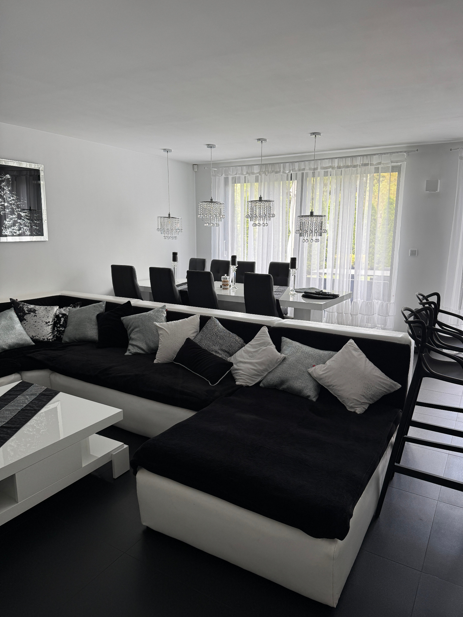 - Piętro: sala kinowa, siłownia, pokój rekreacyjny, taras